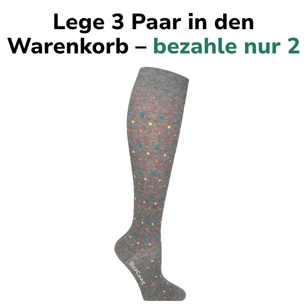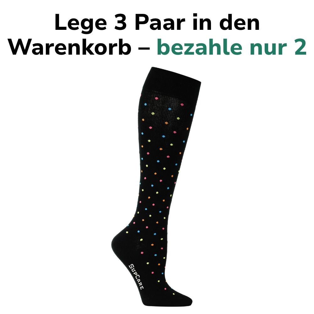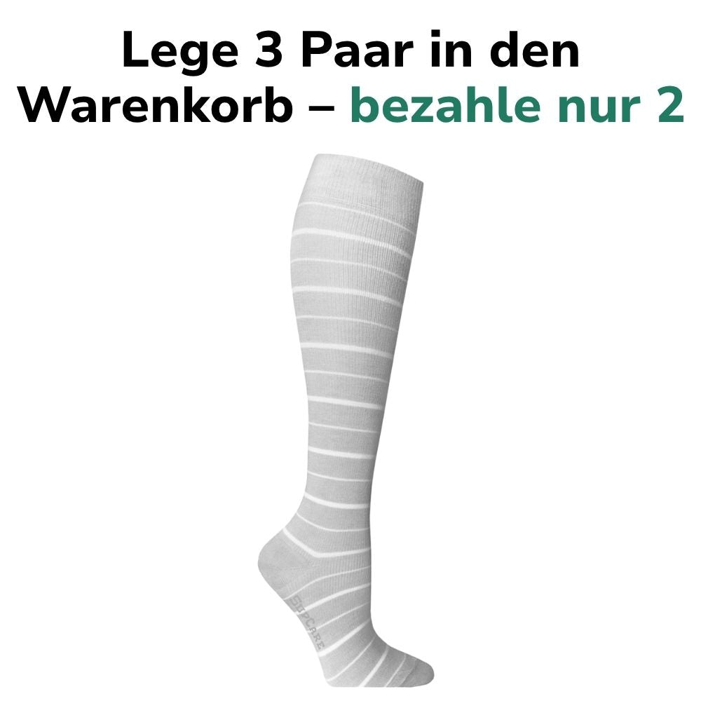 Diese Stützstrümpfe sind dank dem modernen Design perfekt für den Alltag geeignet. Einfach wie normale Socken anziehen und du hast dir und deinen Körper etwas gutes getan.